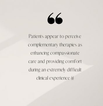 (1) Effects of complementary therapies in cancer care. Briscoe J, Browne N, (2013) Nursing Times; 109: 41 18-20